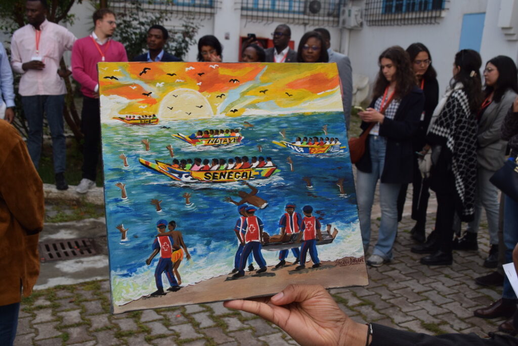 Le dernier atelier de la journée a permis à chaque délégation de présenter une œuvre artistique traitant des migrations dans son pays ou sa région d’origine.